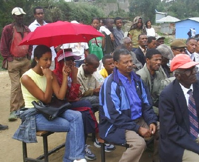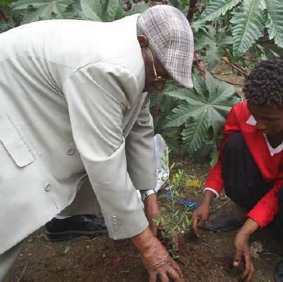Only three months remain before the much anticipated Ethiopian Millennium on September 12, 2007. Much has been said about the upcoming New Year and Millennia. The government is using the occasion for too much propaganda about the event. The event is declared to be the Millennium of Africa, on the last year meeting of Africa's heads of states in Addis Ababa. A secretariat has been set to coordinate the moment. Two expatriates Ato Seyoum Bereded and Ato Mulugeta (The son of the Ras Asrate-Kasa) were nominated as director and deputy of the event, respectively. It has been almost a year since the secretariat was established; although no meaningful work is accomplished yet. Many are saying the secretariat is "teeth-less lion" - talks too much but nothing practical is done yet. Almost everyday, the Ethiopian state media continues to spread propaganda about the Millennium. The secretariat is planning the celebration to be spread out over the year 2000. A huge number of Ethiopians and non-Ethiopians are expected to come. Estimated numbers for the guests has now jumped to 700,000 (between September and December 07). There is a rumor that the Ethiopian Airlines is already booked especially around September and January. The issue of Hotels and hostels has become a huge business news in the media by the public and tour operators. There aren't enough rooms for this many people - as everyone knows. It is always very difficult to look for room, when there is a big meeting like the AU heads of state in Addis, let alone with this expected big crowed. The new Addis Ababa city administration is considering the use of some of the finished condominium houses for rental. Others are saying many of the people who will come are Ethiopians and every one will go to their relatives home leaving the hotels free for foreigners. Even the Prime Minister has asked the people to show respect for guests by leaving hotel rooms for foreigners. The reaction from the public is mixed. Almost every Ethiopian is interested in the event but for most people, it is like appeasement to celebrate in the current condition with EPRDF. Many peple want - and even have officially asked for - the release of CUD leaders in order to make the celebration inclusive of all the people. Nothing is coming out from the government side sofar and the secretariat is saying politics is beyond its mandate. This is deterring many from being part of the process and even some are becoming against it. In a recent meeting regarding the Millennium, a known journalist and social worker was quoted as saying "why not these guys let our leaders free and make us active participants of this amazing event? It is like a coup-d'etat to be part of the event with CUD leaders in the jail. Therefore, a considerable portion of the people are either neutral or inactive observants of the event. On the other hand, a lot is going on in the city. The Addis Ababa administration is trying to repair old roads and roadsides. Many new roads are being constructed; many of the old buildings are being painted, particularly at Piassa, Arat Kilo and Merkato. A student at the Indian Community School was overheard commenting "Don't this people know any other color except green and purple; it is so boring to look every thing in green and purple all of a sudden from the class room". Many are saying that the millennium has nothing to do with the government. A number of young adults are planning to get married or to give a birth on the millennium. Surprisingly many big hotels are already booked for marriage parties for the Millenia. A typical example is Global hotel. All weekends in April and May are booked for marriage parties. Some are planning to make use of the business opportunities. A number of hotels and hostels are being constructed. Many buildings, business and restaurants are named in relation to the Millennium. A large poster advertising "Millennium Carnival at MicroLink College" was recently put up. The Sheraton hotel had put up a big digital watch that counts down up to the Millennium. Ato Abisolom yehedego (an Ethiopian of Eritrea origin) owner of Keste Demena sponge factory has used the last patriots day celebration by producing big and even some funny posters about the Millennium. There are also a number of non-profit works being planned by the secretariat and the public such as building of schools, parks and an initiative like "One book to home" - books to be collected at the airport from returnees and to form a library and distribute the rest books to colleges. Then other most important event advocated by the secretariat is "planting two indigenous seedlings by the millennium". This will help to fight the amazing desertification in the country. Following this call activities have started. A good example is a youth club called "TENA KEBENA" at Agoza sefer and Kazanchis which is one of the dirtiest and most polluted corners of Addis. They plan to clean the village and plant indigenous threes. The occasion was amazing as it brought together people from different background and age groups. The old man (President Girma) is shown on the left planting a tree. We hope to celebrate the once-in-life-time Millenia with lots of enthusiasm; but guilt, anger and regret about our imprisoned Kinijt leaders in Akaki continue to overshadow the planned event.